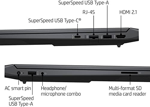 SuperSpeed USB Type-C 5Gbps (DisplayPort 1.4, HP Sleep and Charge), SuperSpeed USB Type-A 5Gbps (HP Sleep and Charge), SuperSpeed USB Type-A 5Gbps, Ethernet Port (RJ45), Headphone/microphone combo, HDMI 2.1; Intel Wi-Fi 6 (2×2) + Bluetooth 5