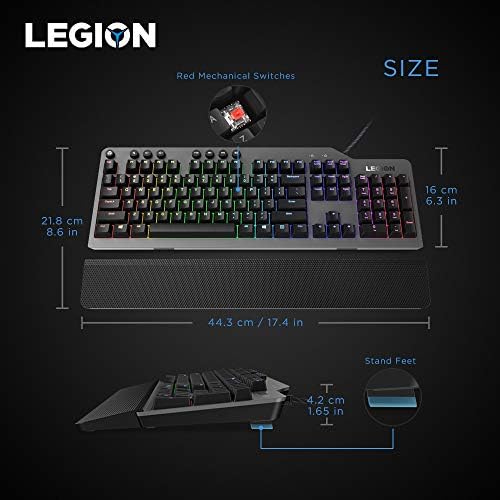Lenovo GY40T26478 Legion K500 RGB Mechanical Gaming Keyboard, 3 ZONE Full-size Keyboard, 7 user Programmable Hot Keys; 16.8 Million Colors, 50 Million-Click Red Mechanical Keys, Detachable Palm Rest