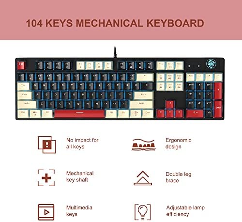 【Solid Sea Blue Color Backlit And Multiple modes Backlight】Mechanical gaming keyboard key light has multiple modes backlight operation modes; The light can also be turned off if you don’t need lighting.